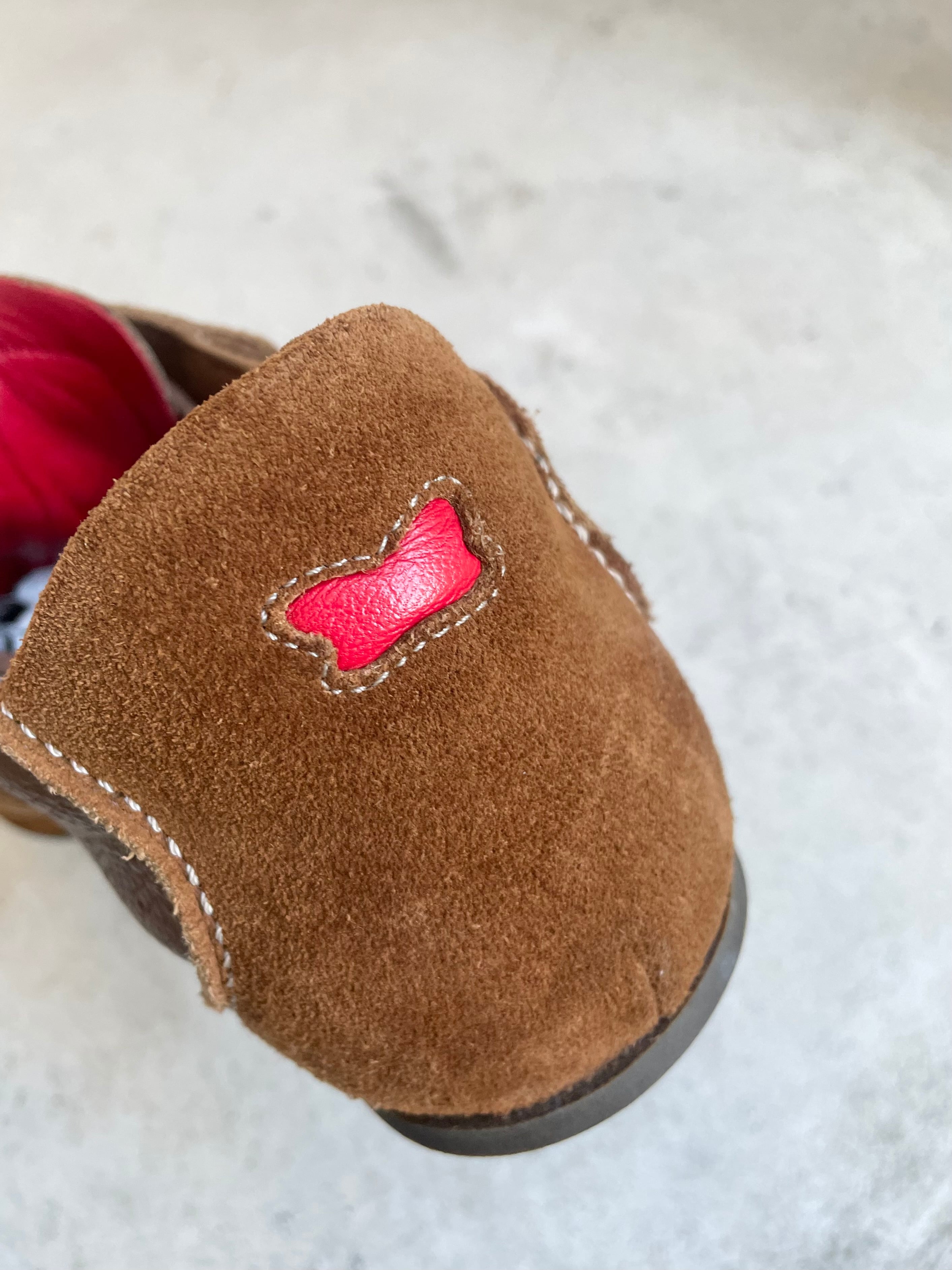 ブラウンカラーにタン裏、ヒールに入ったレッドカラーの差し色が◎。