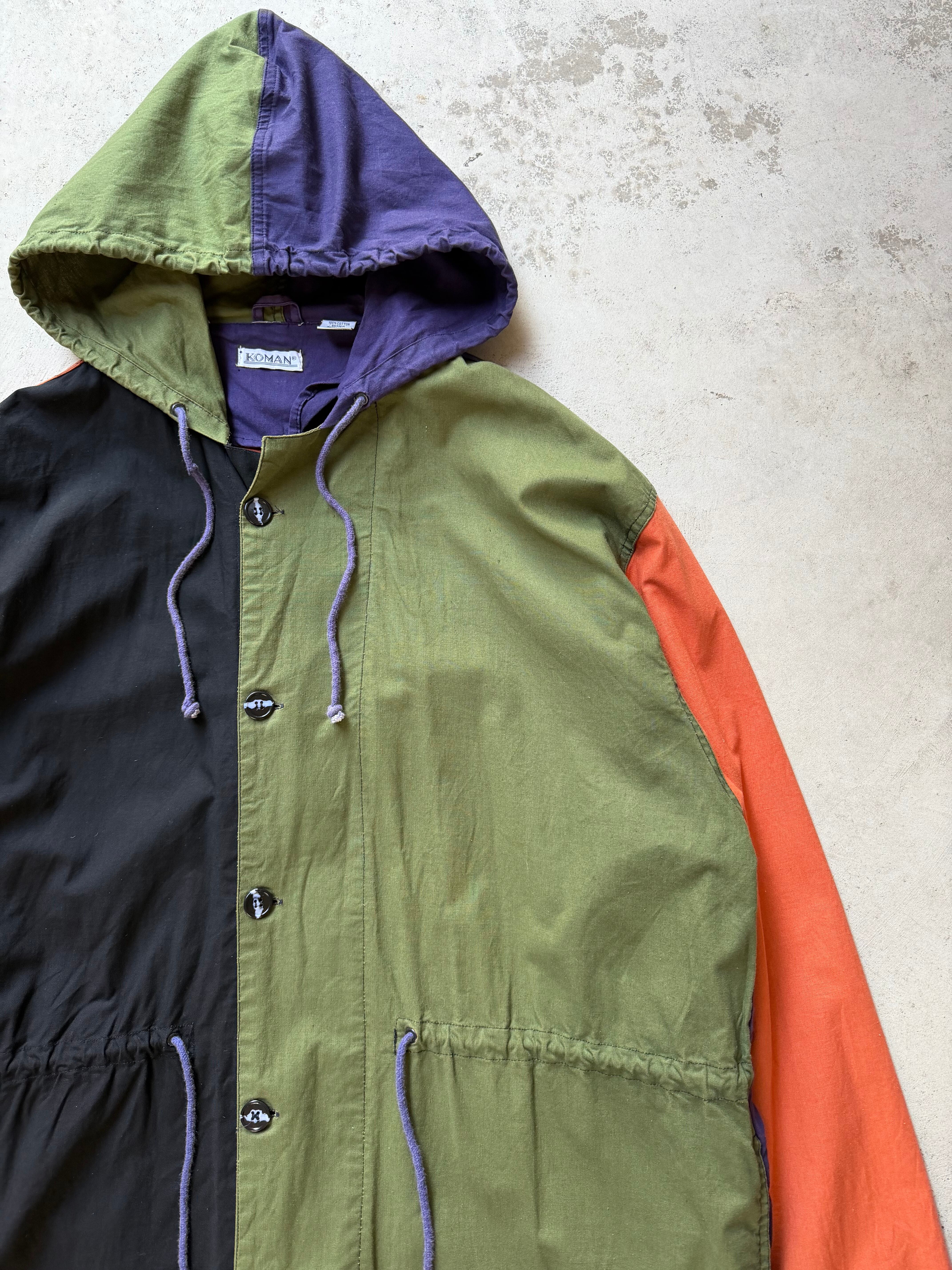 80s "KOMAN" multi color switch design hooded coat