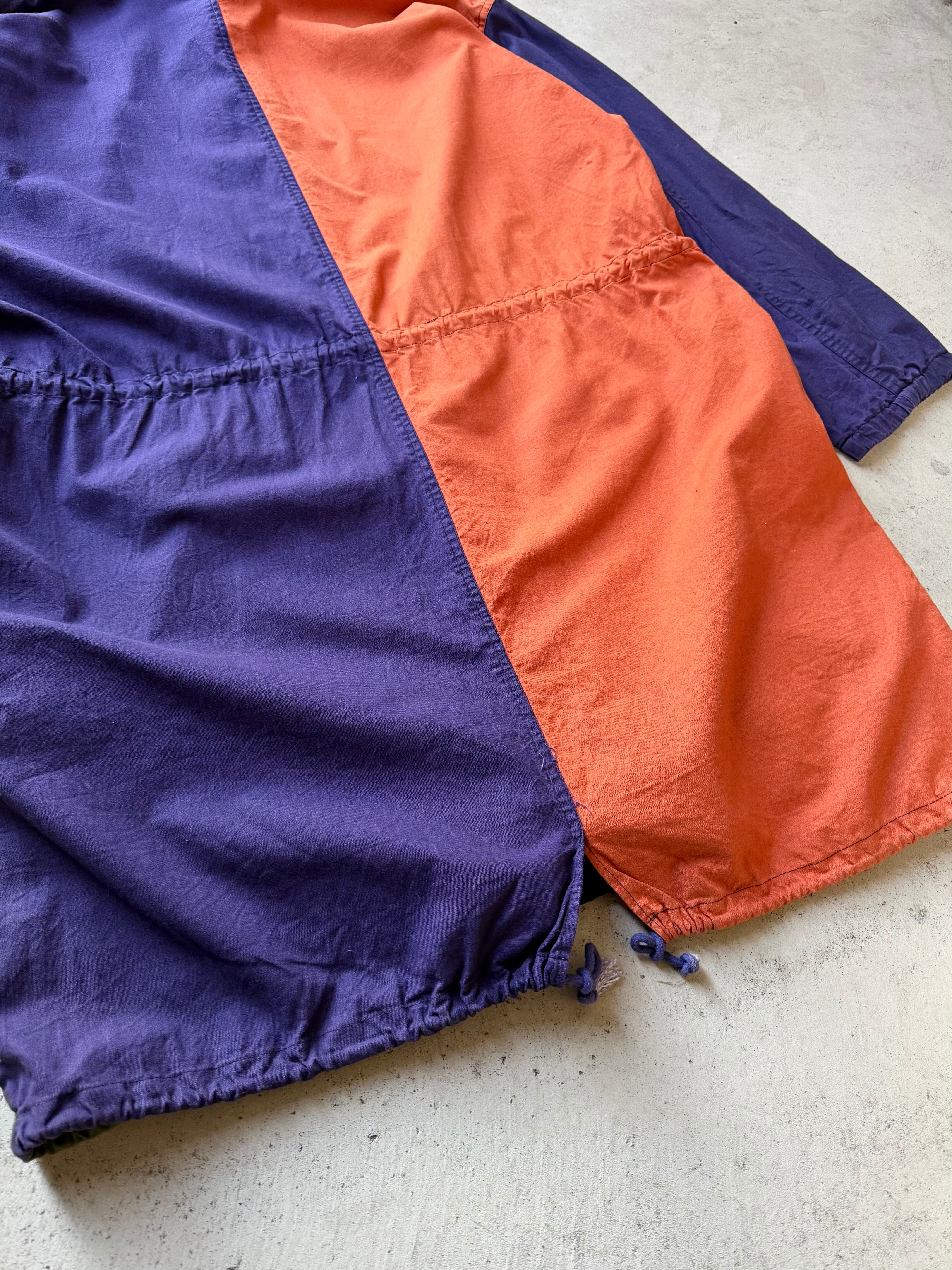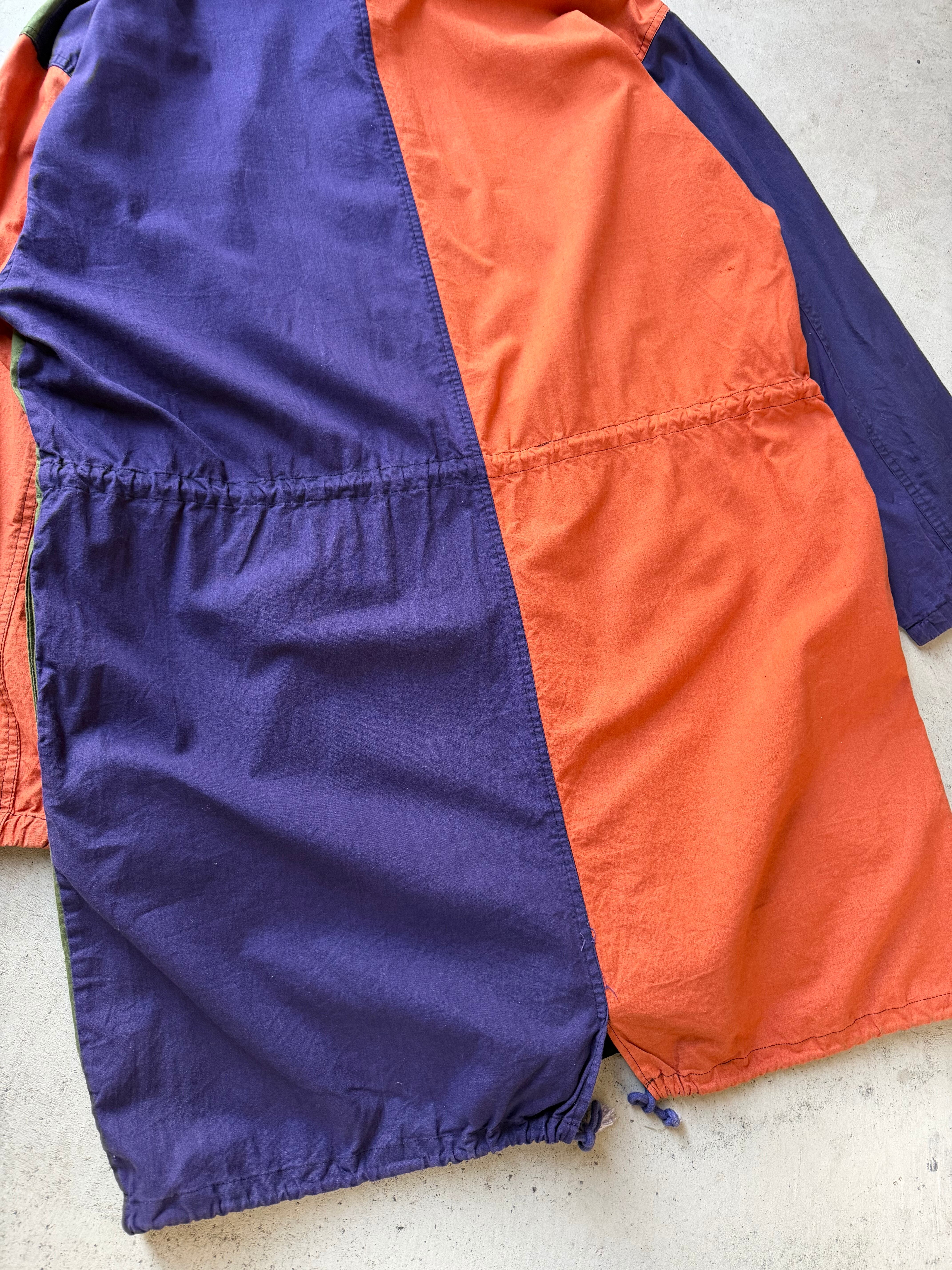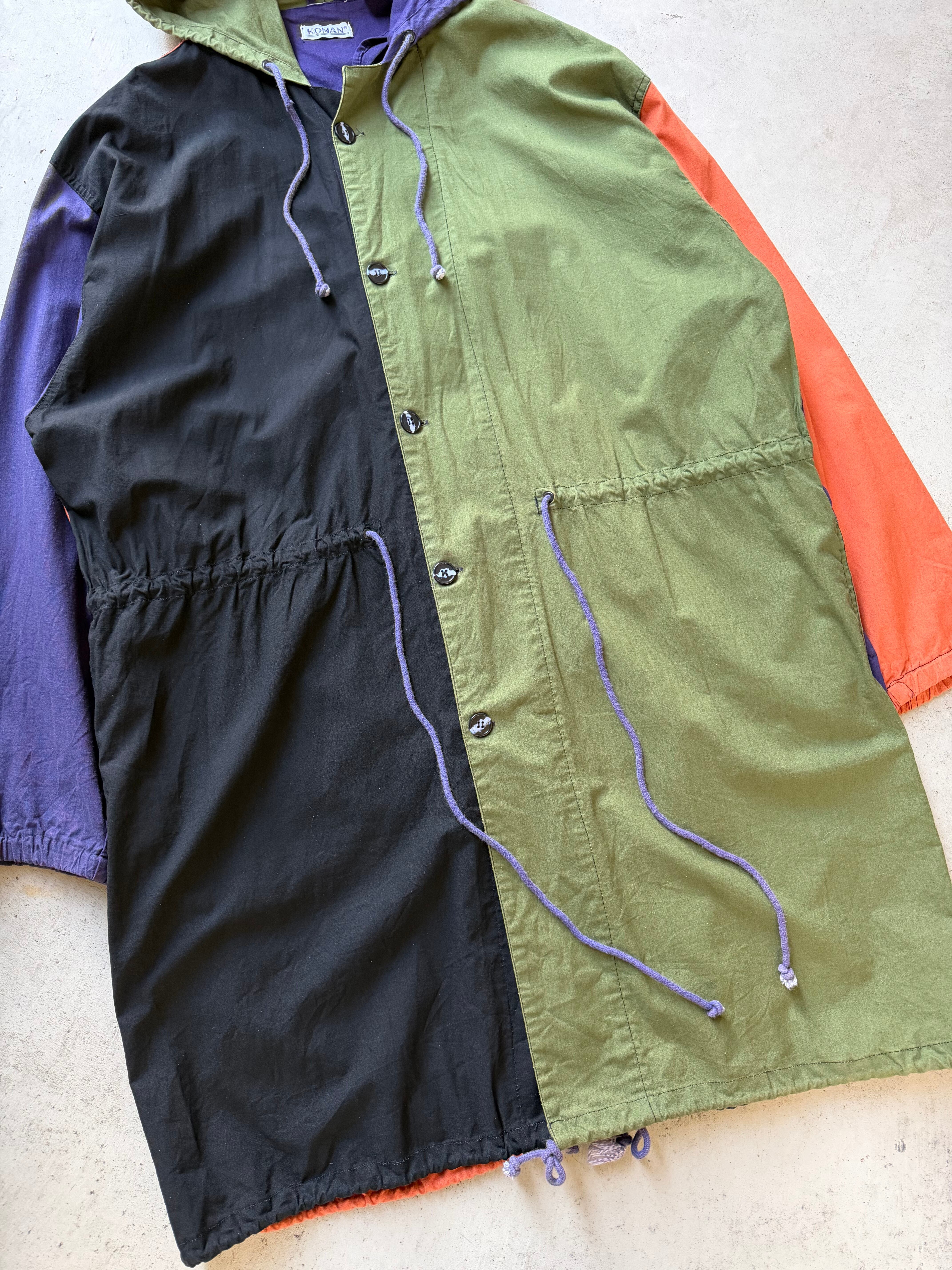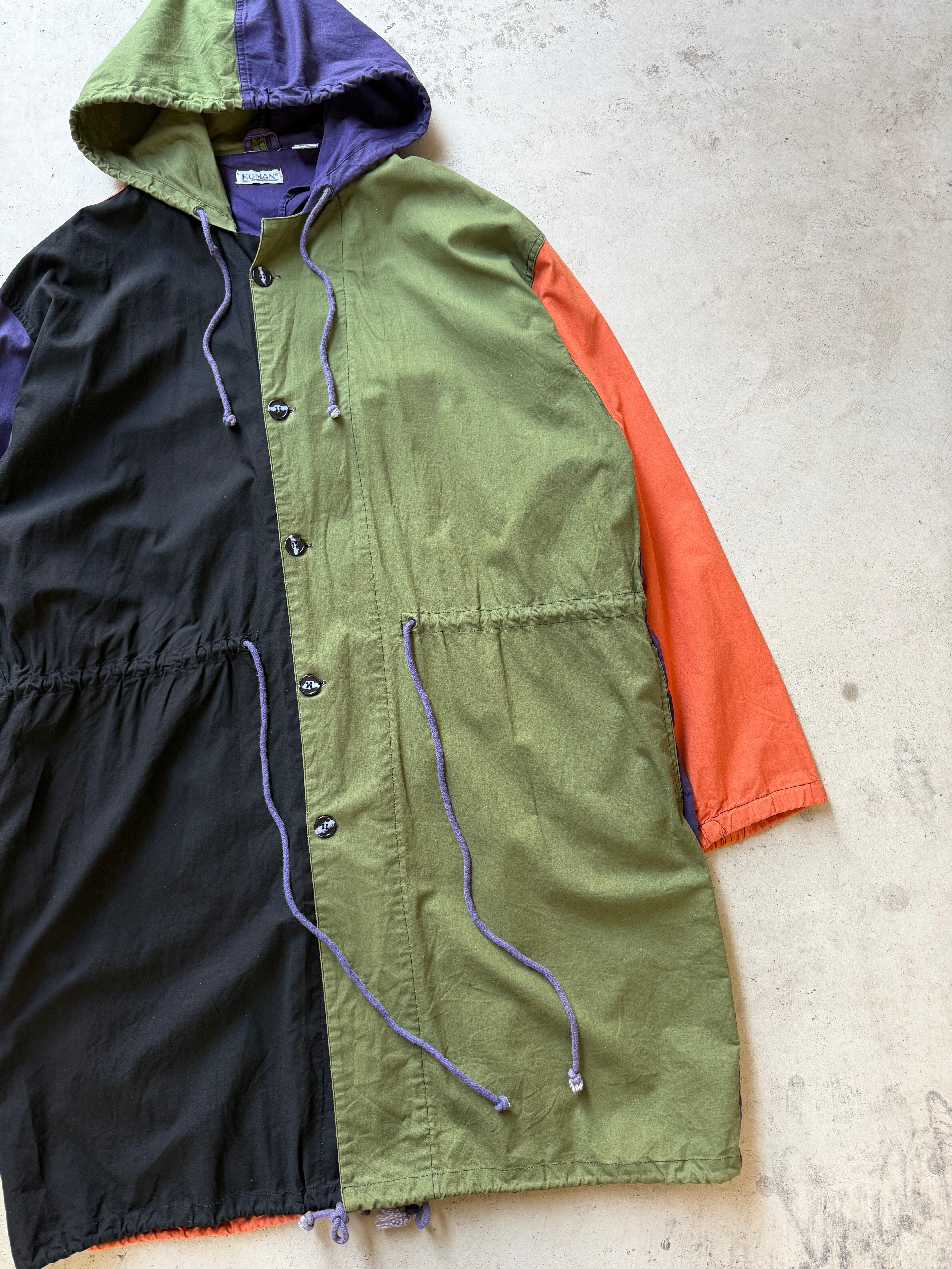 マルチカラーの切替え、フィッシュテールオマージュのデザインがクールな80年代”KOMAN”のフーデットコート。