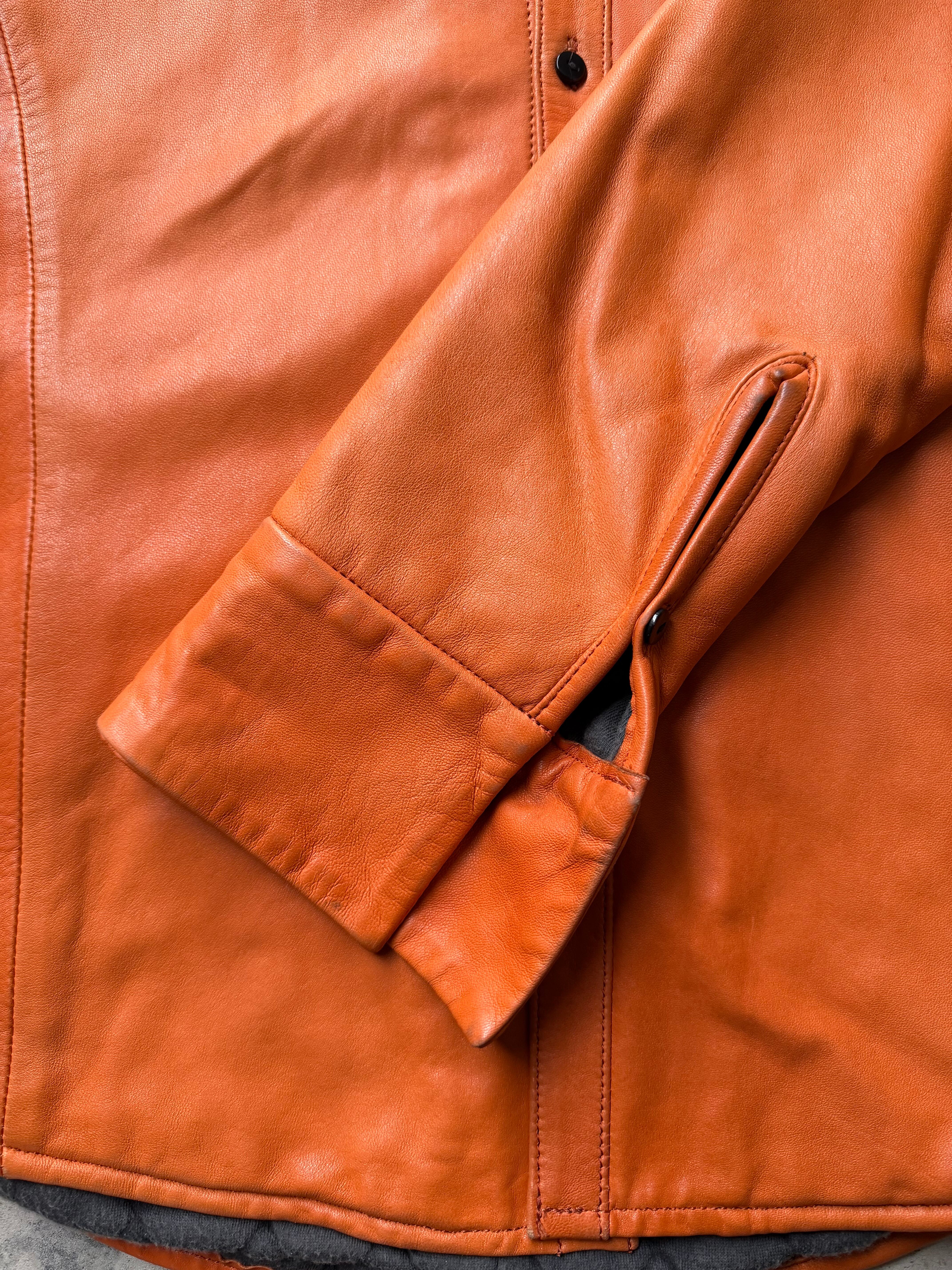 袖口にスレ、シミ、その他にもシミがありますが着用には問題ありません。レザーの質も良くコンディション良好です。
