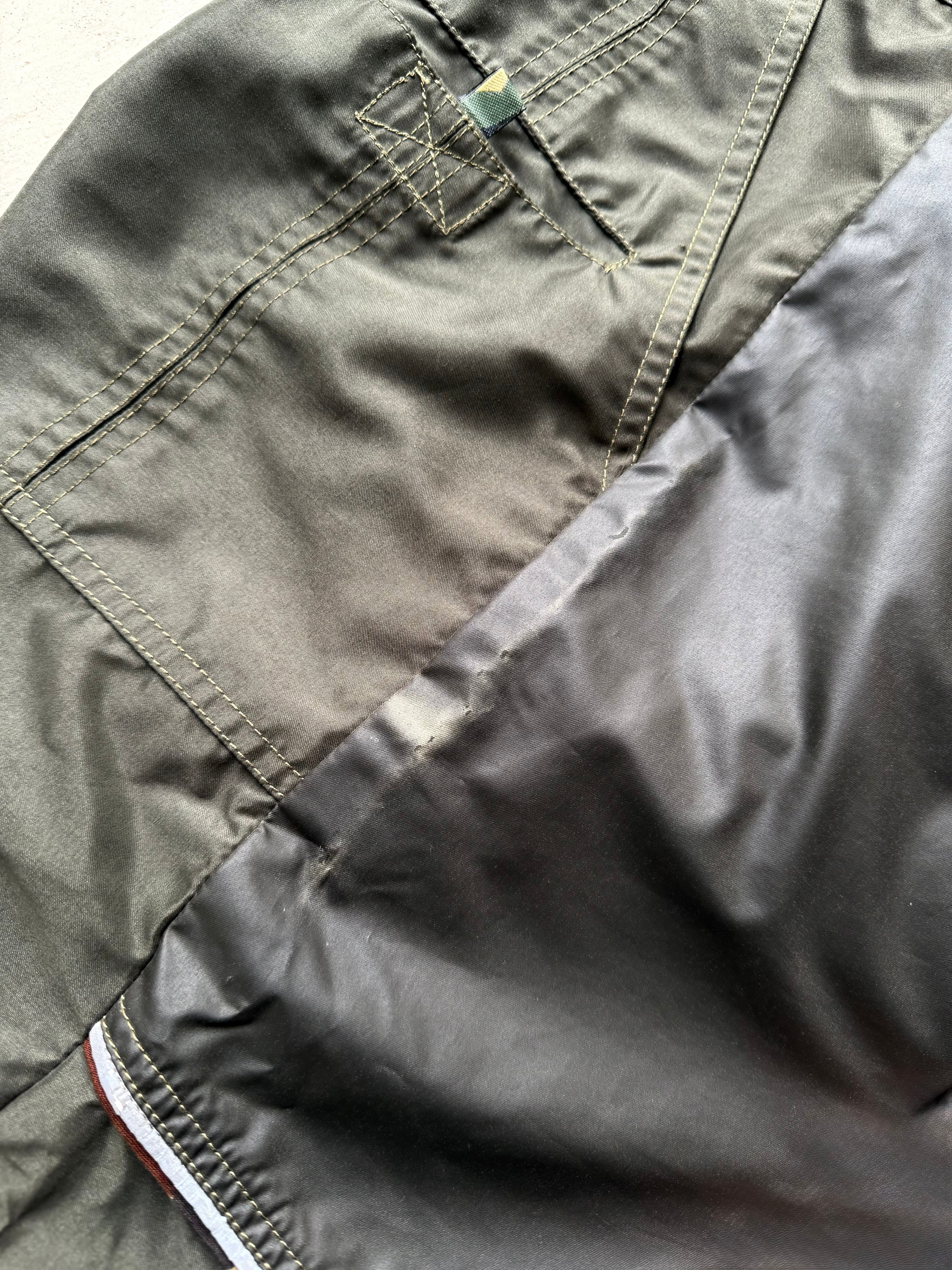 この時期の特徴でもあるカモフラージュパイピングとリフレクターパイピングを施したデザイン、ファブリックの切替えたデザインは後のテック系パンツに多大な影響を与えた先駆的デザイン。