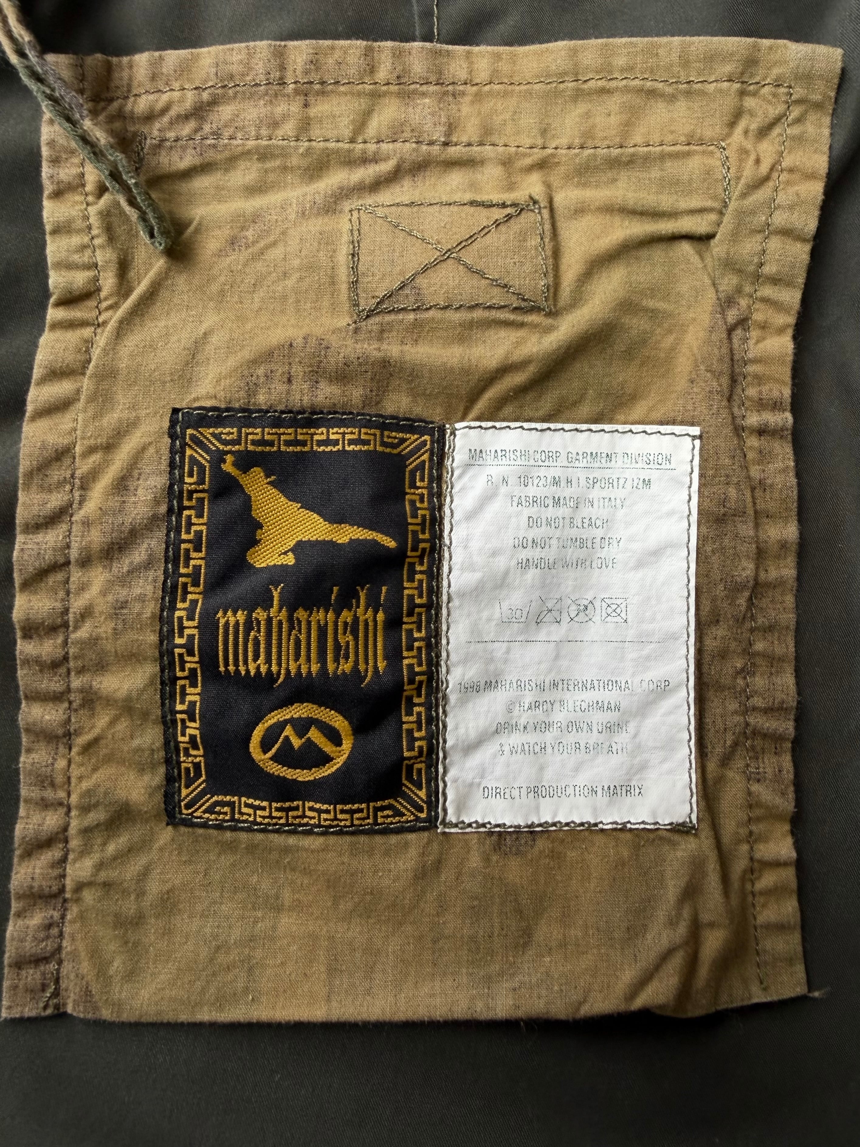 アーカイブ再燃により再評価されているUK発 maharishi(マハリシ)の忍者タグが付く1998年製リフレクターパイピングパンツ。