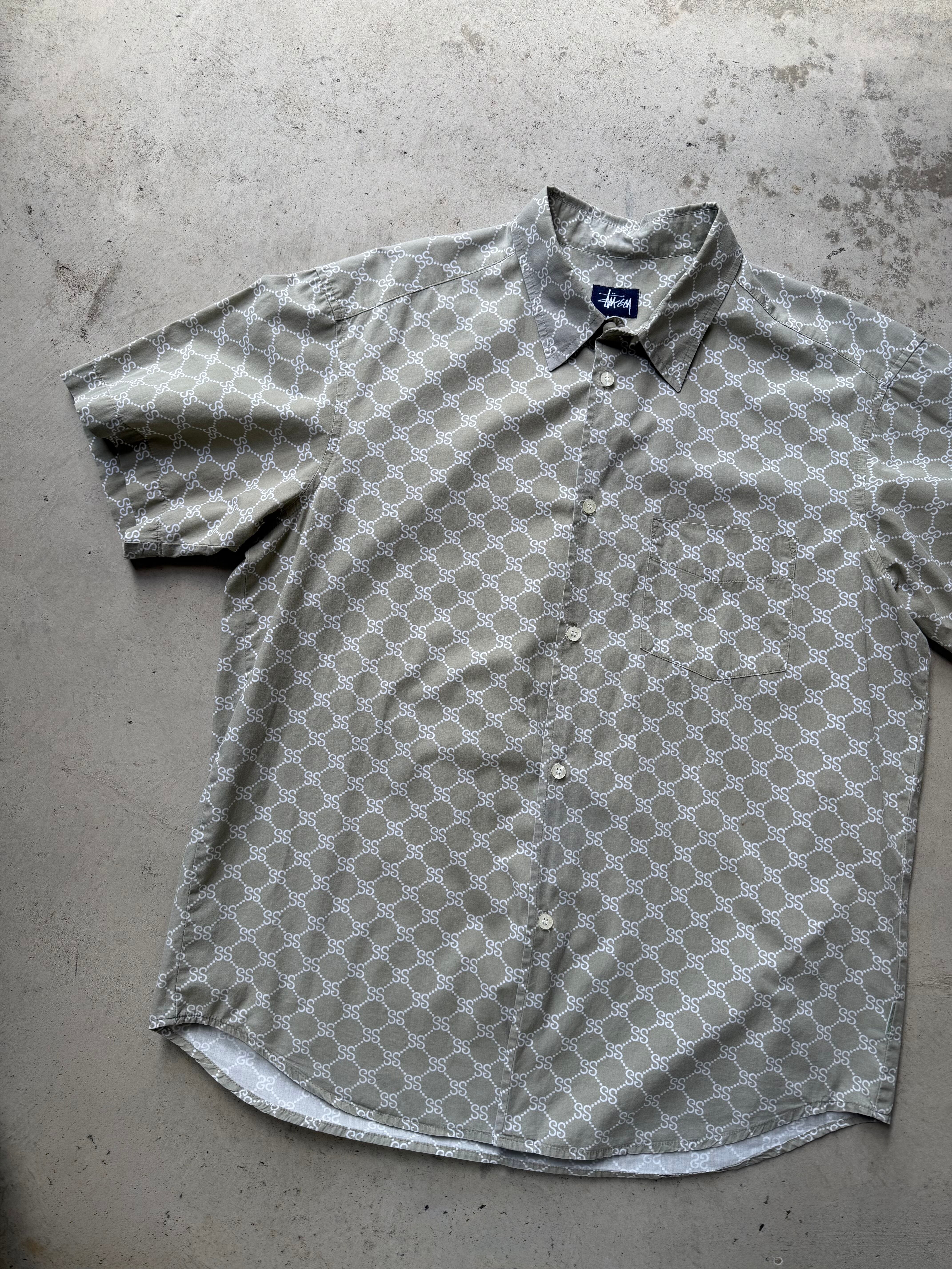 90s stussyのGUCCIモノグラムをサンプリングしたショートスリーブシャツ。ナイスなパロディ。