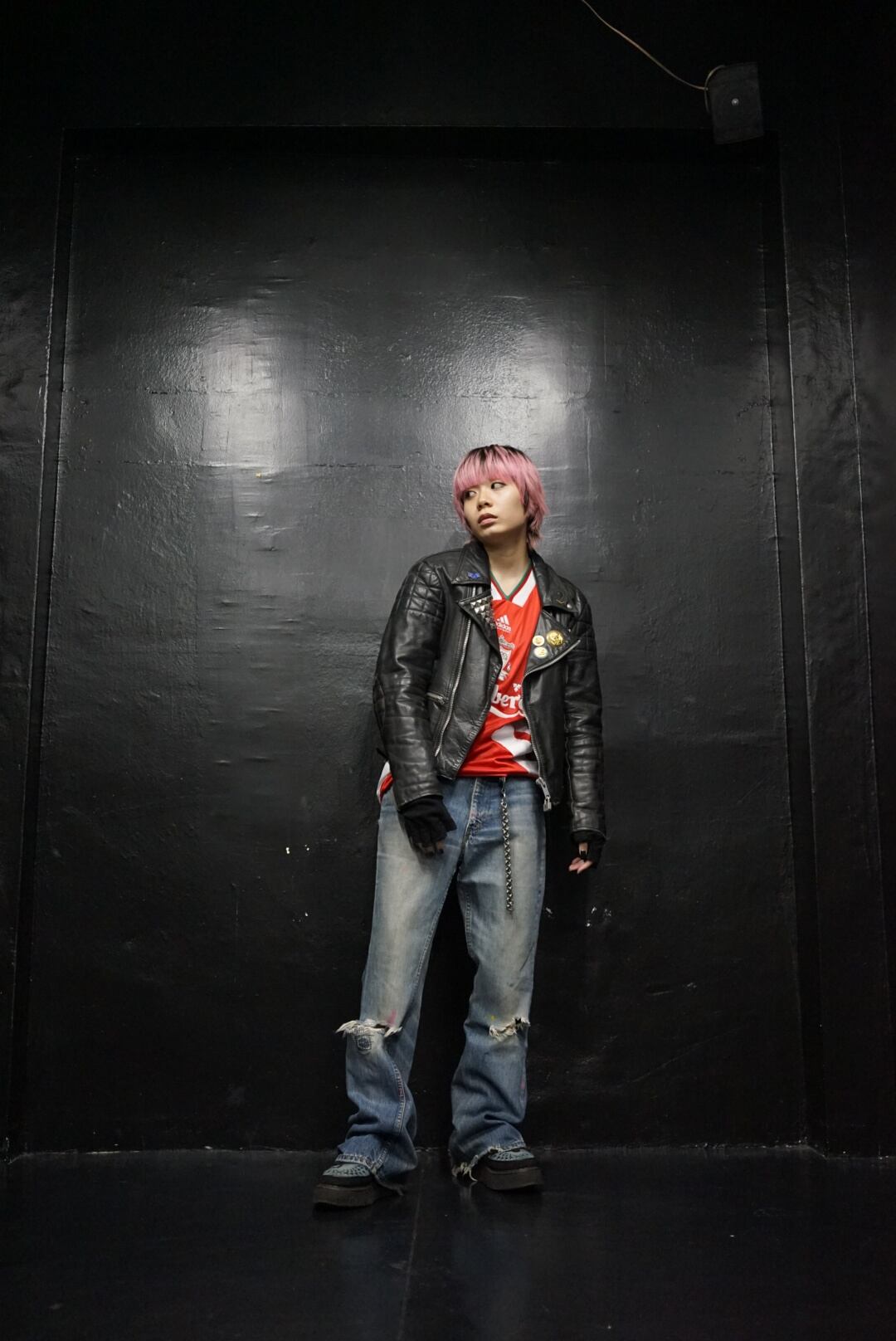 詳細不明ですが、ピンズ、スタッズでカスタムされたクールなダブルライダースジャケット。