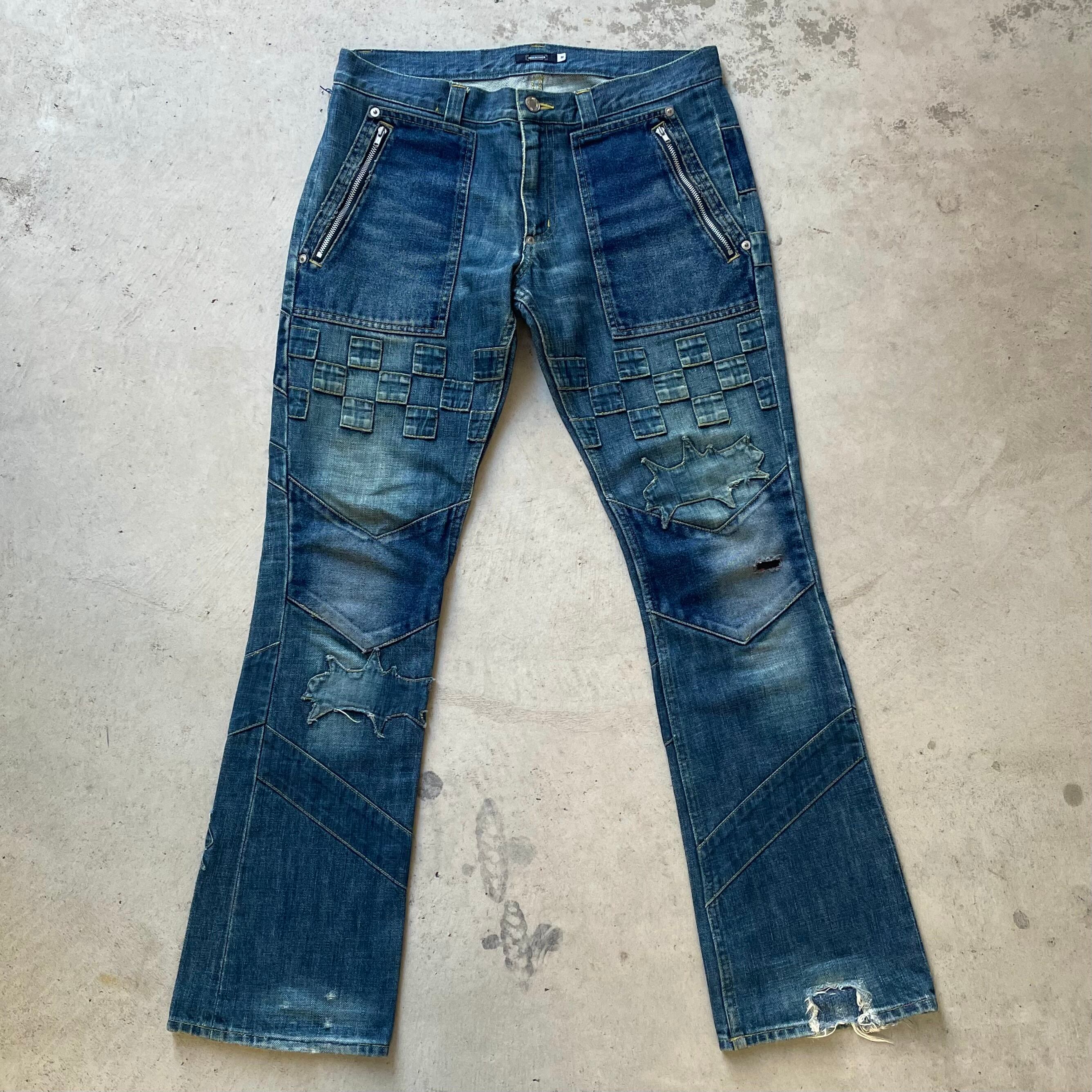 01aw UNDERCOVER “ D.A.V.F期 “ patchwork damage design denim pants size medium