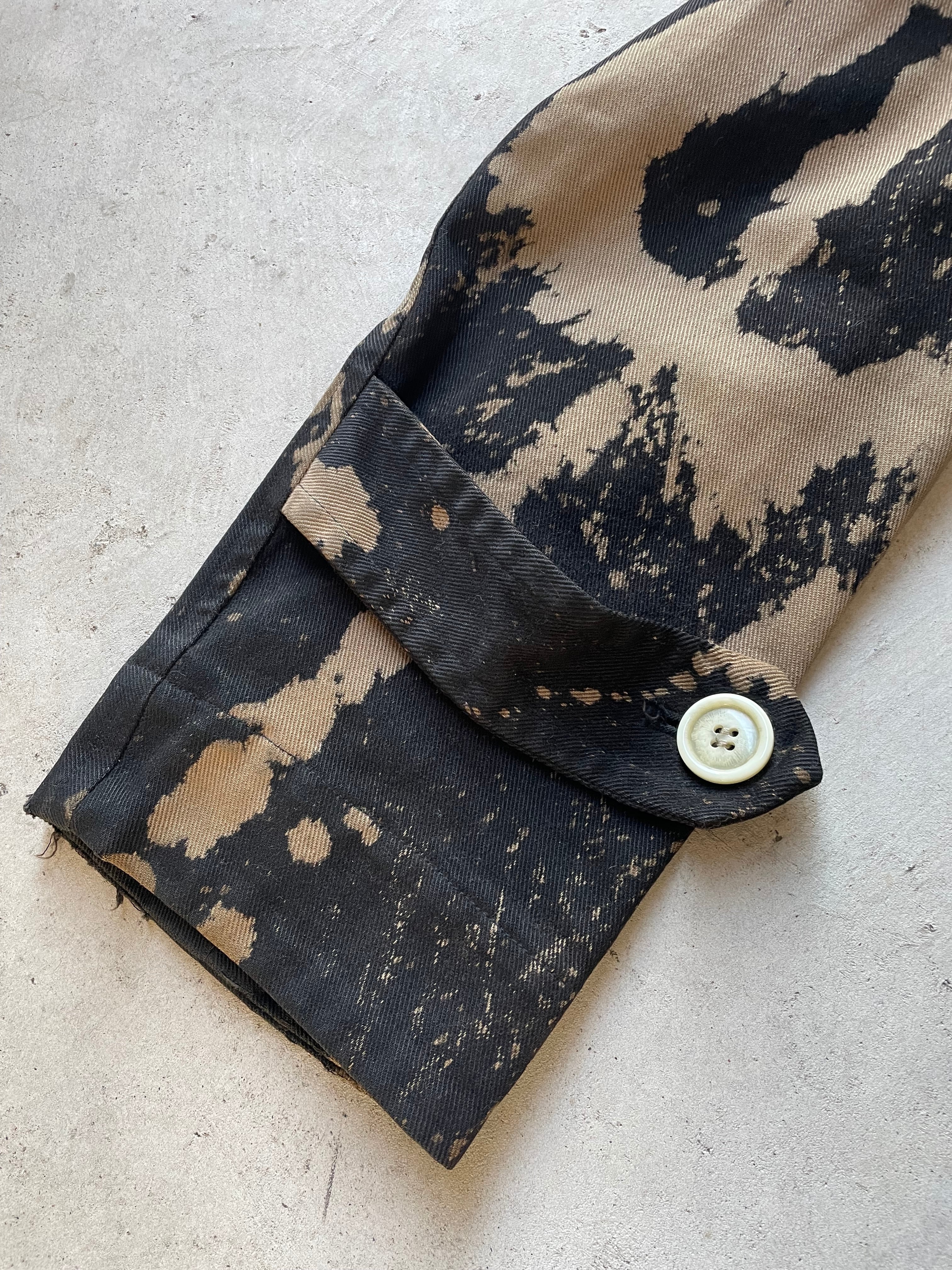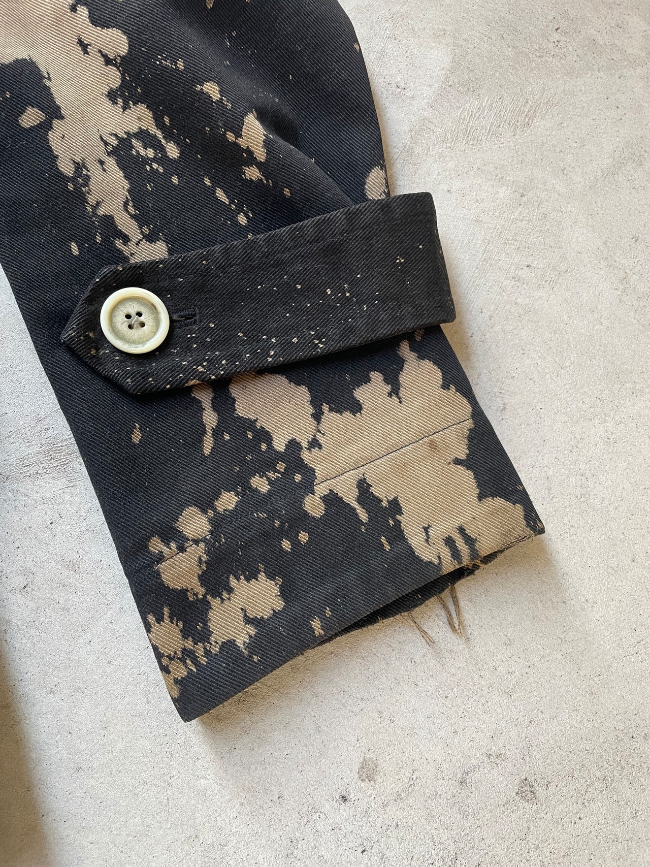 袖口に汚れ、ダメージがあります。また襟、裏側裾付近にダメージがありますが、その他は良好で一般的なユーズドコンディション。