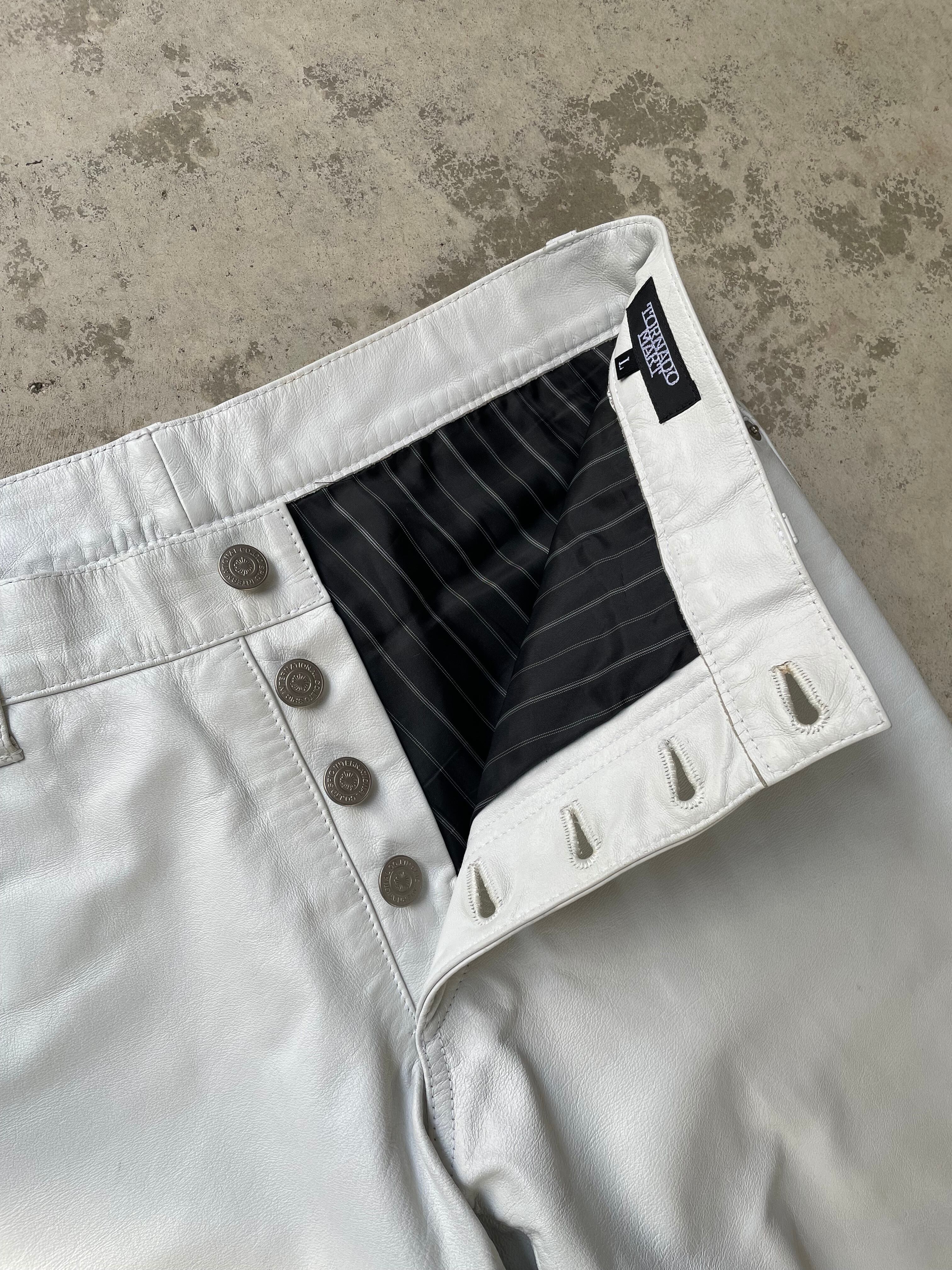 Y2K‼︎ TORNADO MART white leather flare pants size medium