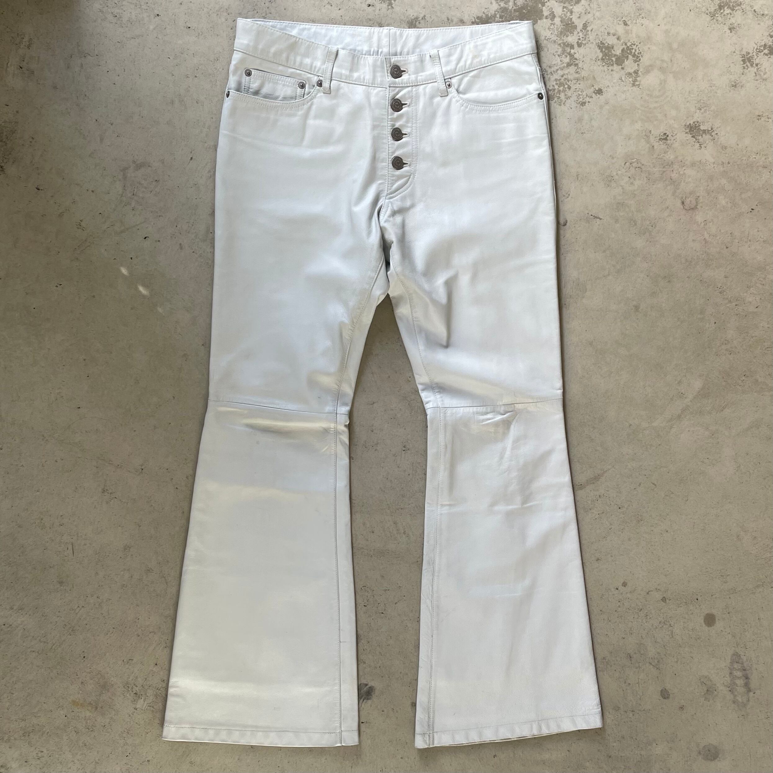 こちらは珍しいホワイトレザーのフレアパンツ。今またいいんじゃないでしょうか。