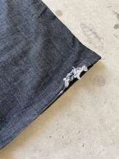 バックプリント部のプリントにひび割れ、また後両裾にダメージ、穴あきがあります。またふくらはぎ付近にも両側共にダメージがありますが、それ以外は使用感を感じない良好なコンディションです。