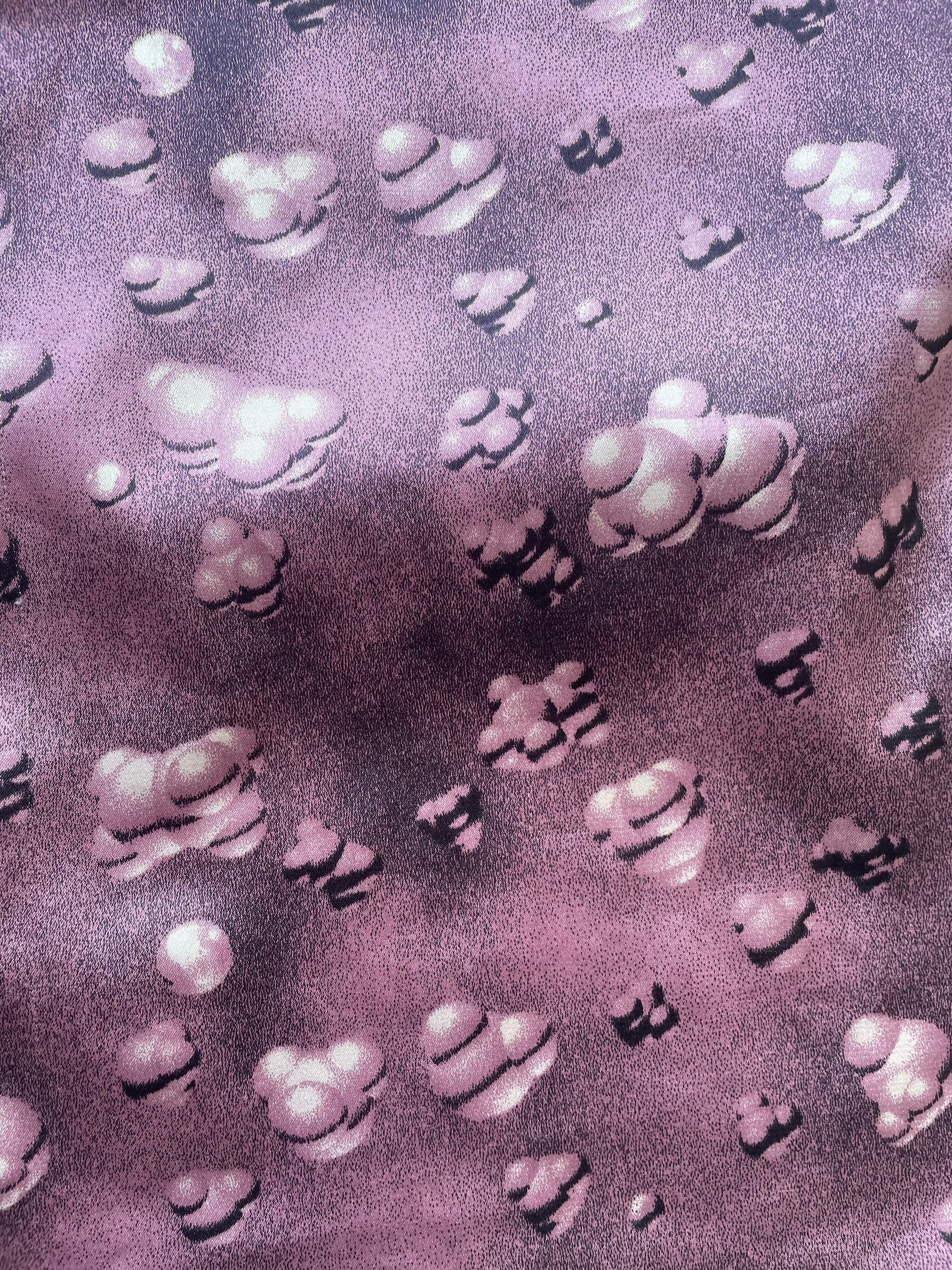 全体的に引っ掛かりによる糸引きが多数ありますが、ダメージはありません。また総柄の為、目立たず着用に影響はありません。