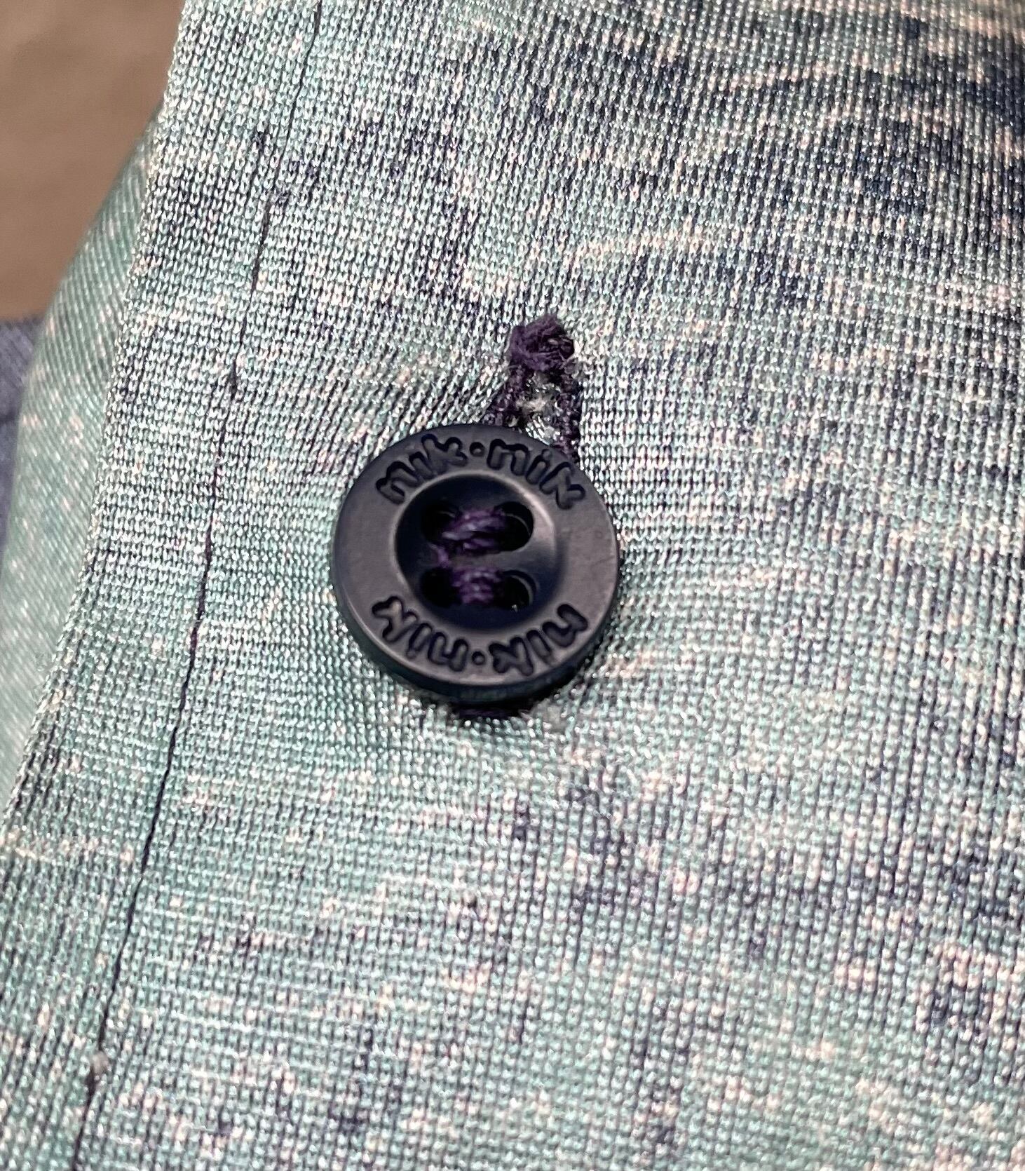 フロント第6ボタン付近に汚れ。またダメージ等は見受けられませんが、全体的に色やけがありますがあまり目立ちません。デザイン的に色やけが逆に良い雰囲気になってます。