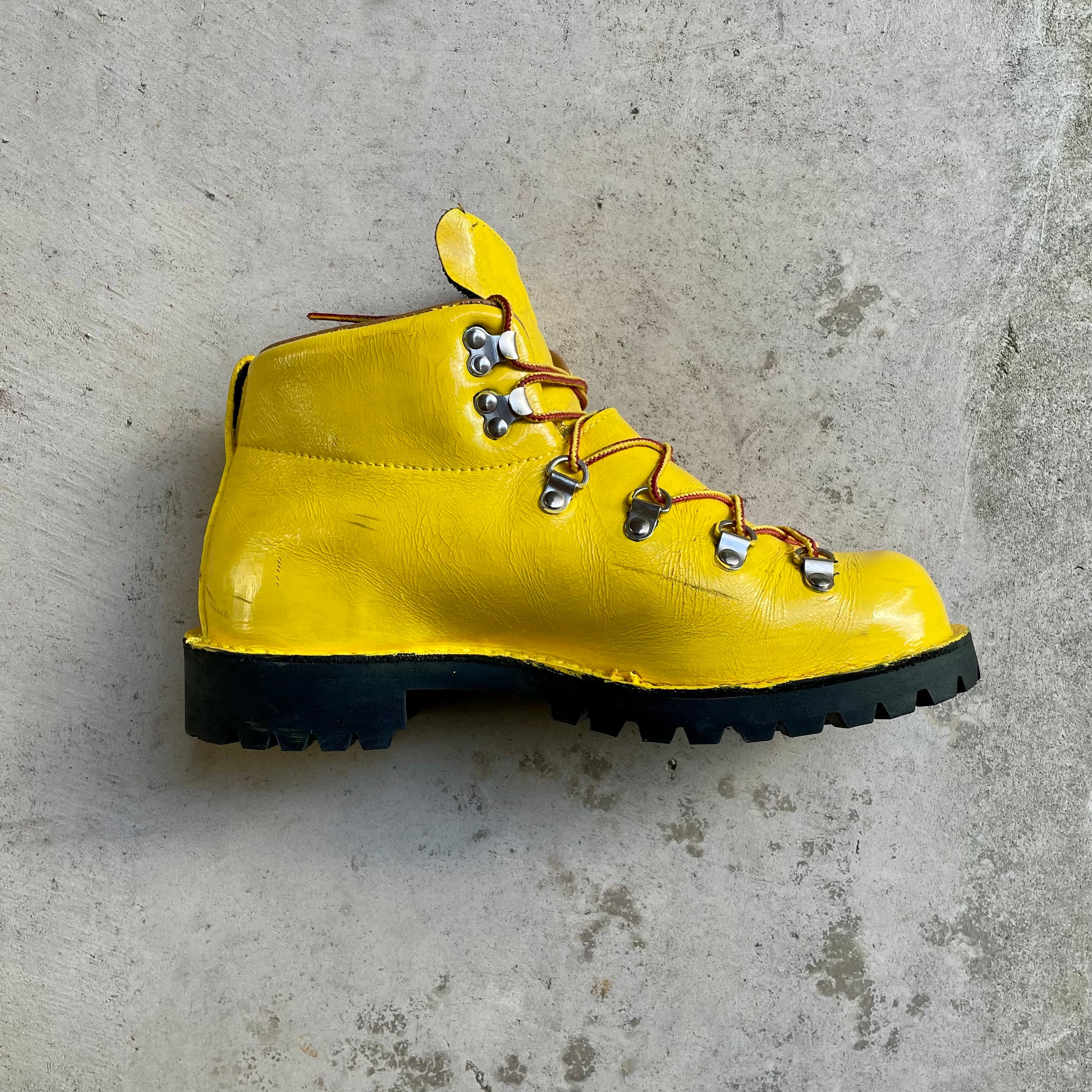 ダナーのマウンテントレイルをベースに黄色のペンキ加工が施されてます。