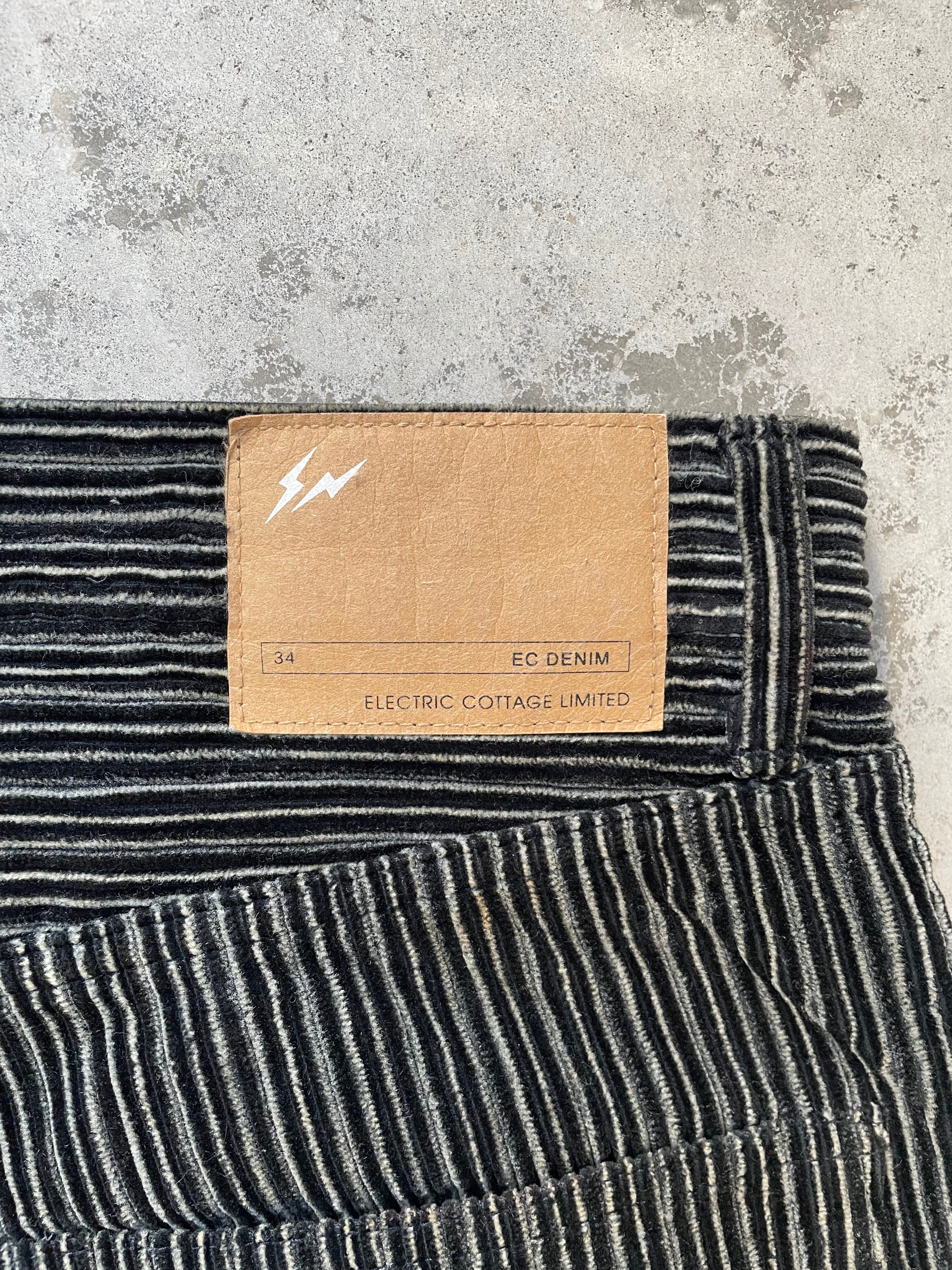 「ELECTRIC COTTAGE」の5ポケット型ブラックストライプコーデュロイパンツ!